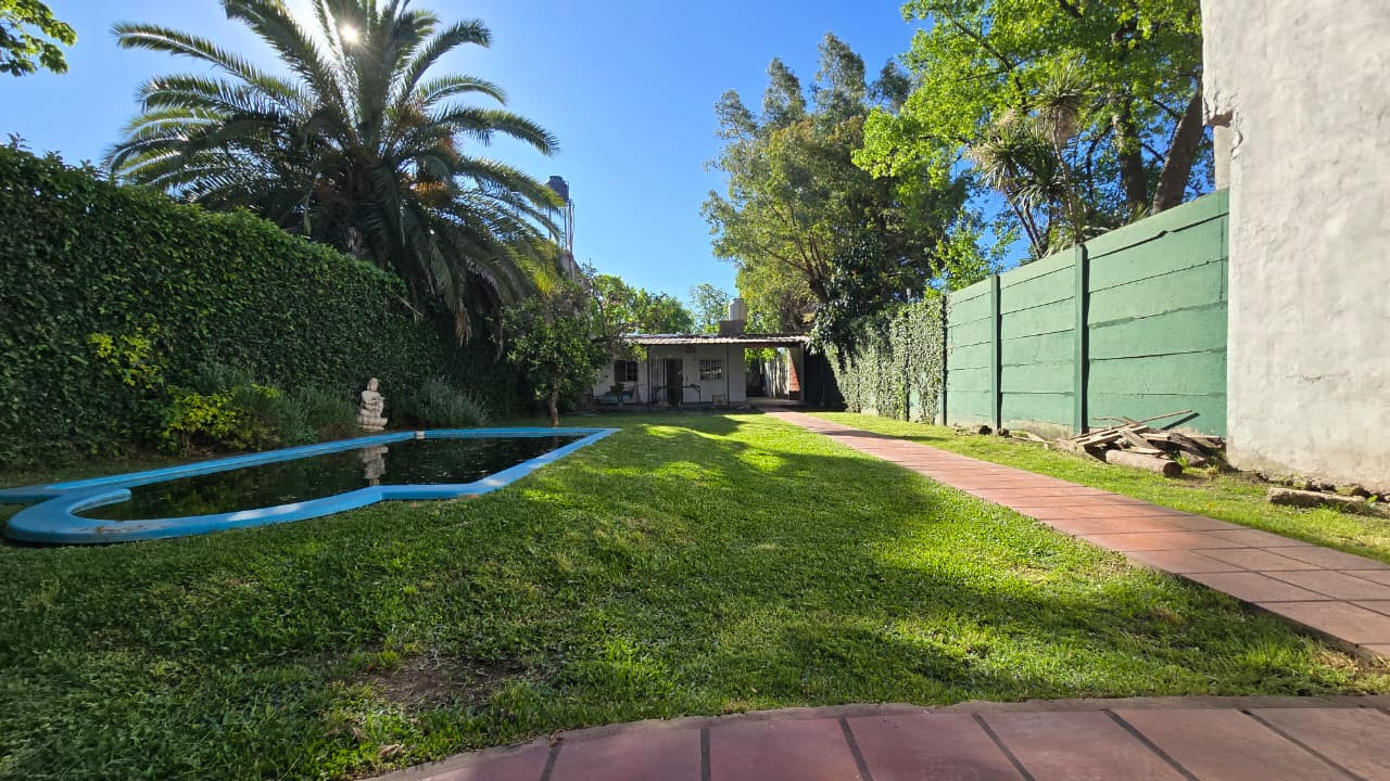 Al fondo se encuentra un quincho de 7,30 m x 5,30 m, con techo de chapa y paredes de ladrillo común. Incluye: