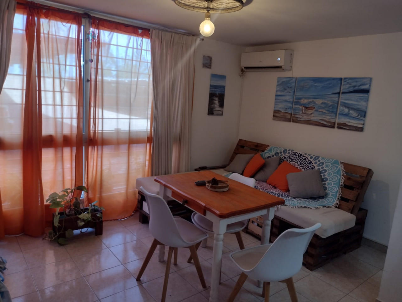 Consta de living comedor con cocina integrada, aire acondicionado frío calor en el living, 2 habitaciones, una de ellas con aire acondicionado frío calor, baño completo, terraza de uso compartido y cochera individual techada.