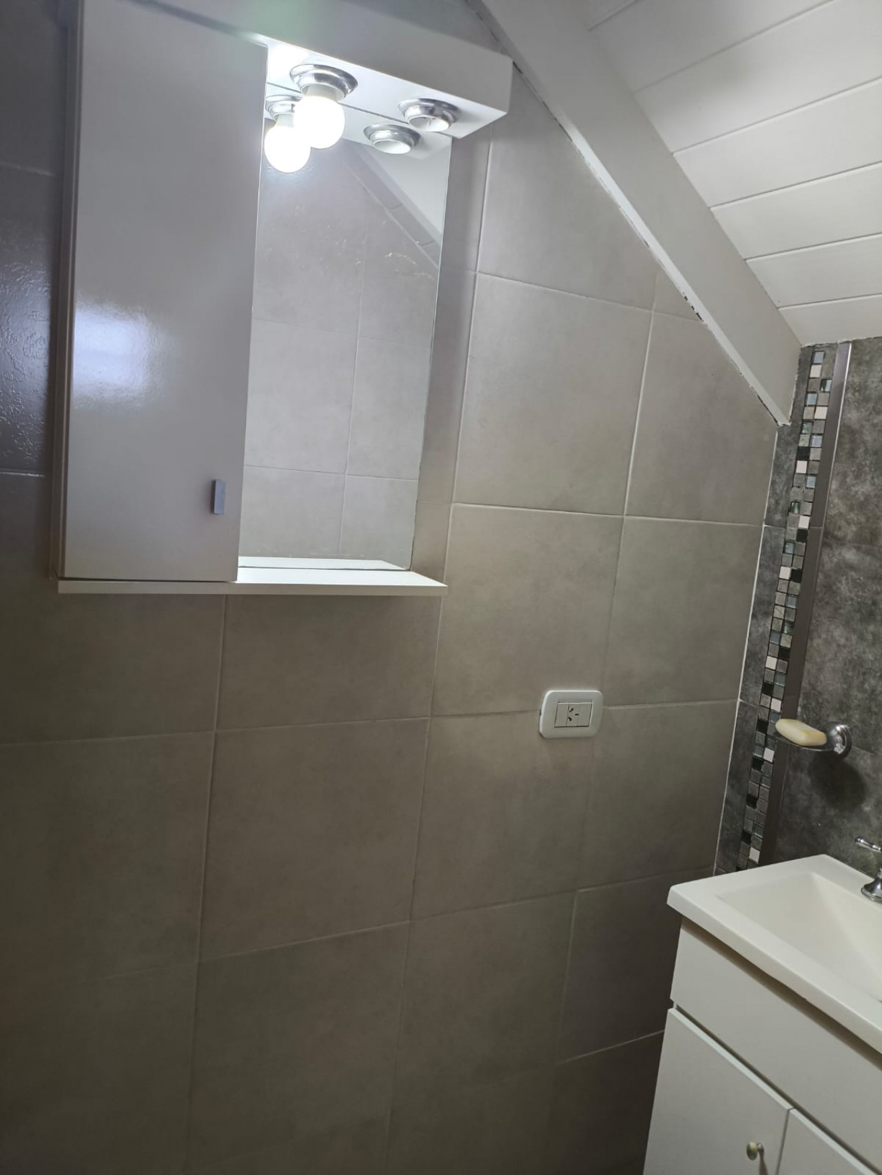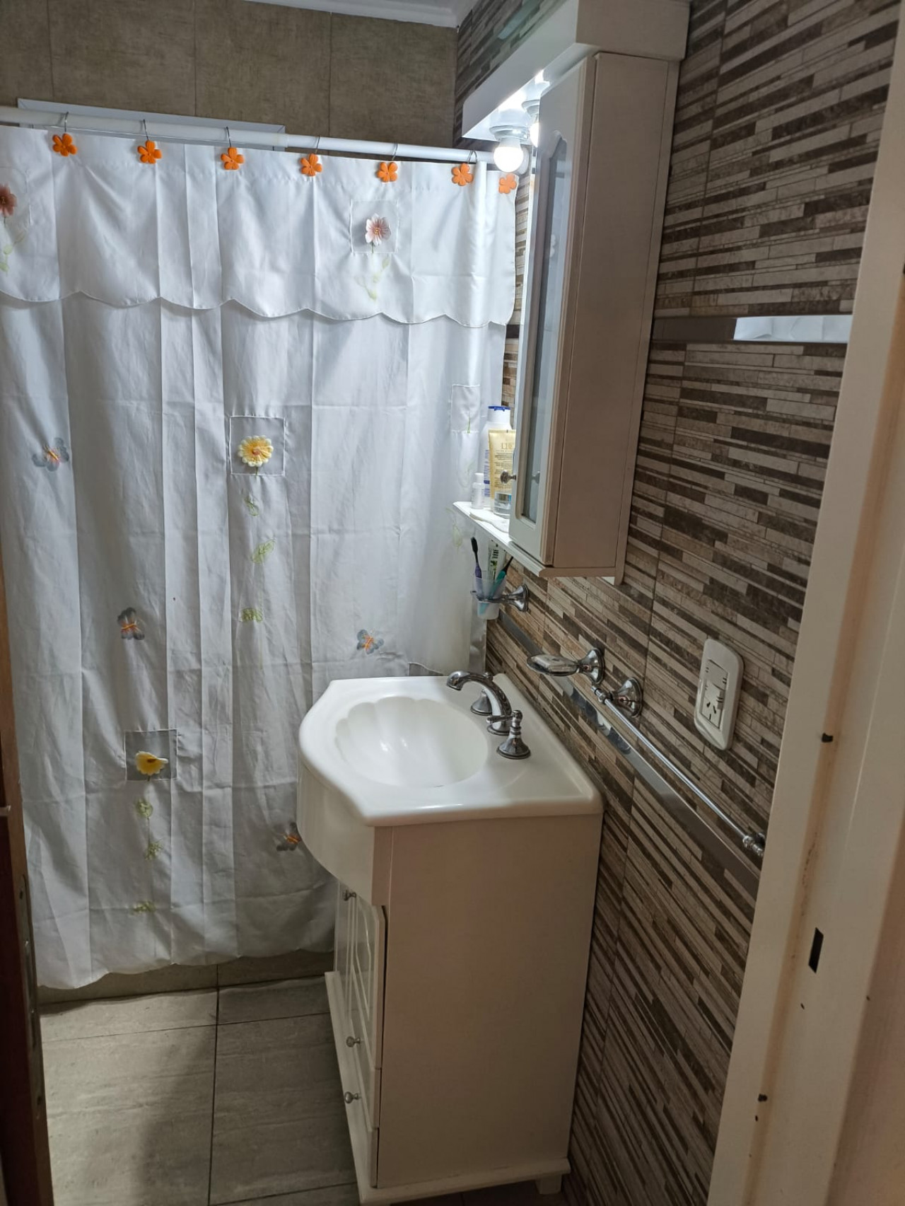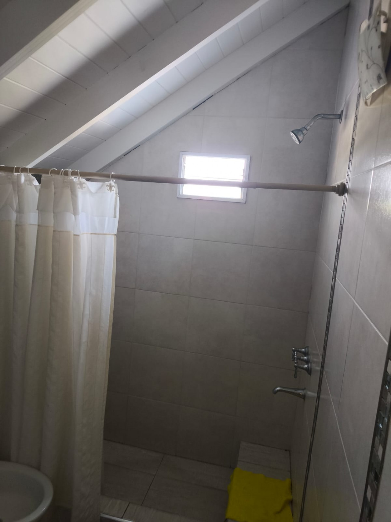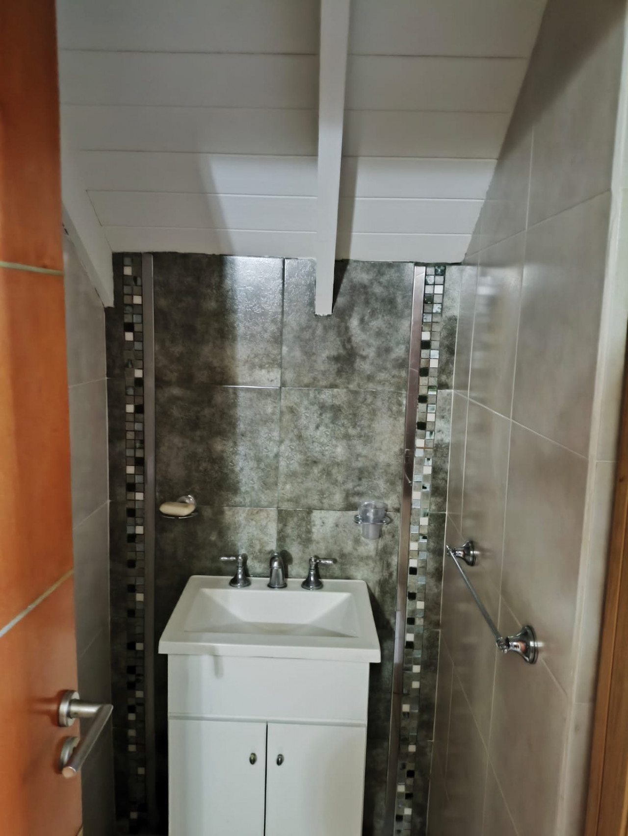 Casa: porche, living comedor y cocina integrados. Sector cocina: mesada de granito, doble bacha de acero inoxidable, muebles bajo mesada de algarrobo, barra desayunadora con copero, mueble vajillero, termotanque eléctrico, heladera con freezer, calefactor, mesa comedor de algarrobo con 7 sillas y aparato de TV. Hall de distribución a dos dormitorios; primer dormitorio: cama de dos plazas, dos mesas de luz, cómoda, ropero de 3 puertas y 4 cajones; segundo dormitorio: cama de una plaza, cama cucheta doble, mesa de luz, velador, ropero ídem y ventana. Baño: vanitory con puerta y cajones, espejo con luces, ducha y ventana. Puerta que comunica con el patio posterior al sector lavadero, con mesada, bacha y mueble bajo mesada ídem. Escalera que conecta con la planta alta.