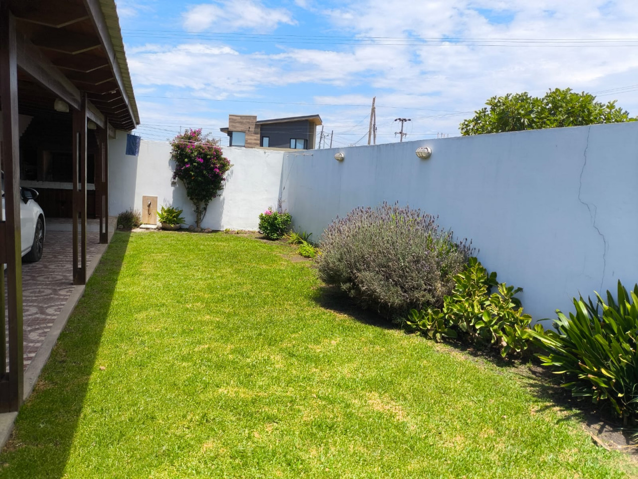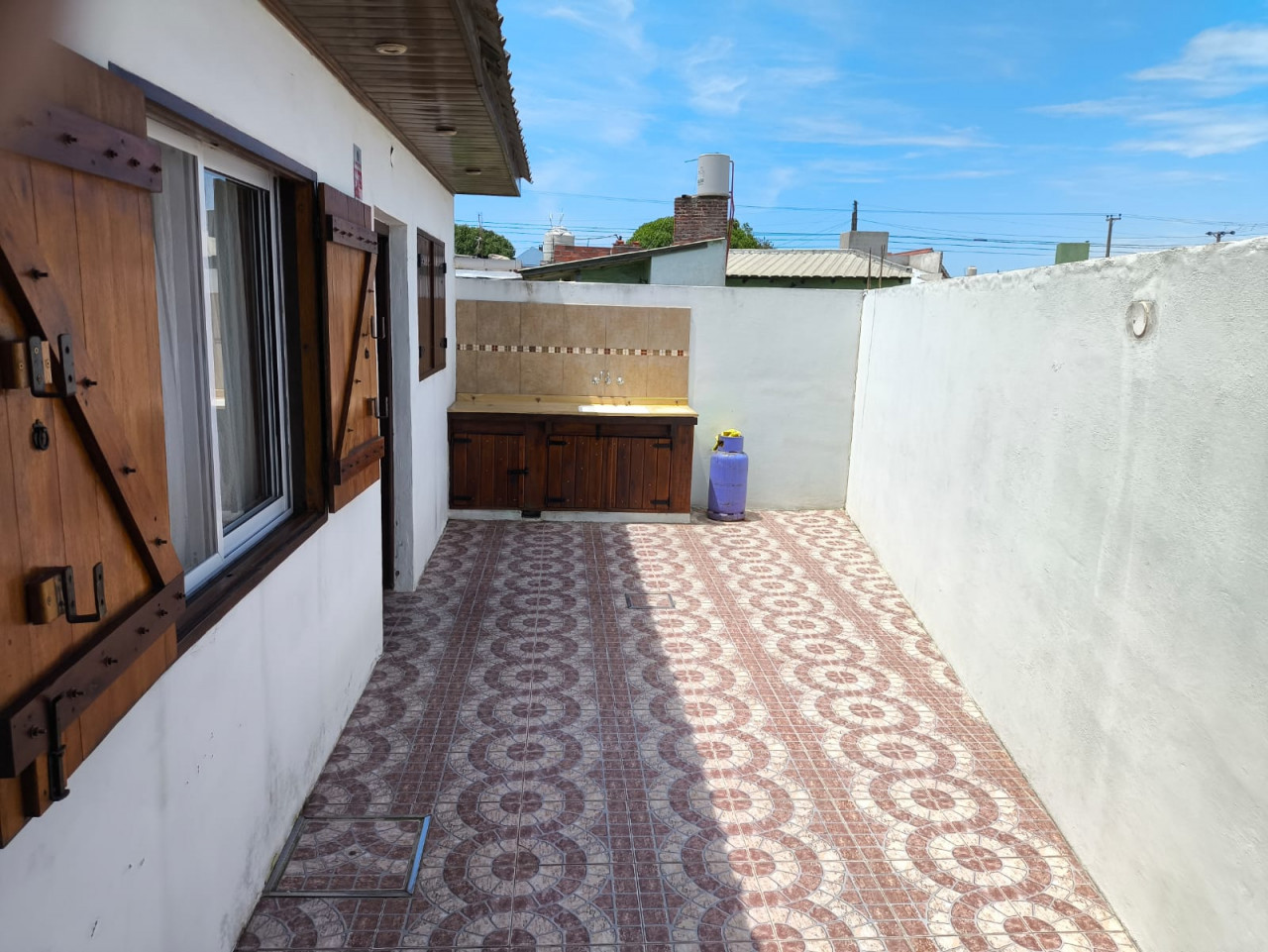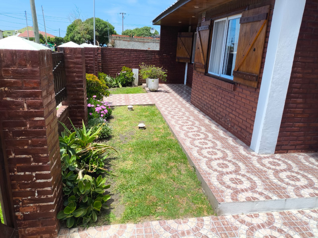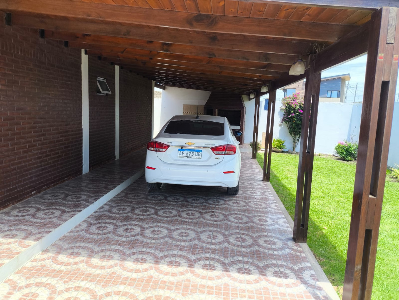 Exterior: sobre la línea municipal, pilares de mampostería y rejas de madera, puerta de acceso peatonal y portón vehicular, cochera cubierta con cielorraso de madera a la vista con buenos tirantes, capacidad para dos autos; a continuación, parrilla con mesada, bacha y leñero. Jardín.