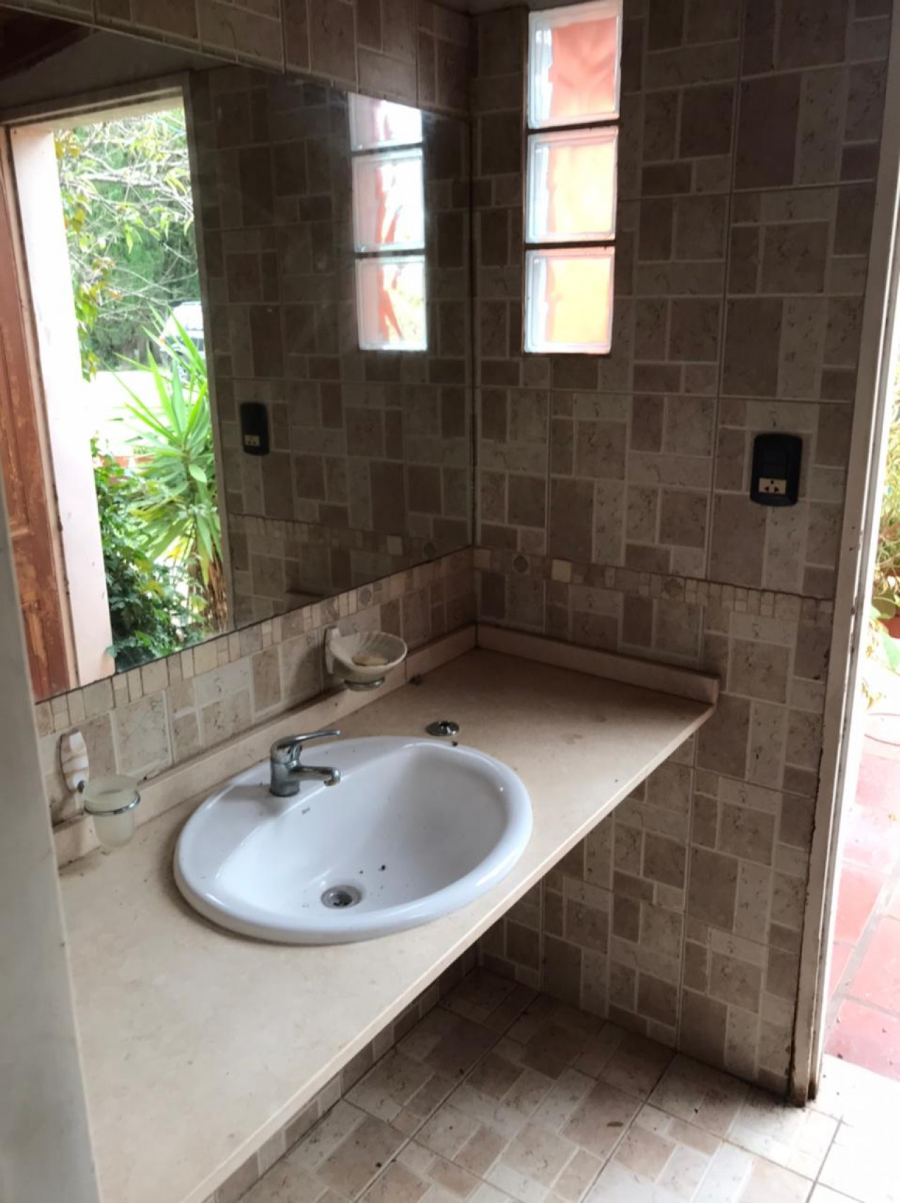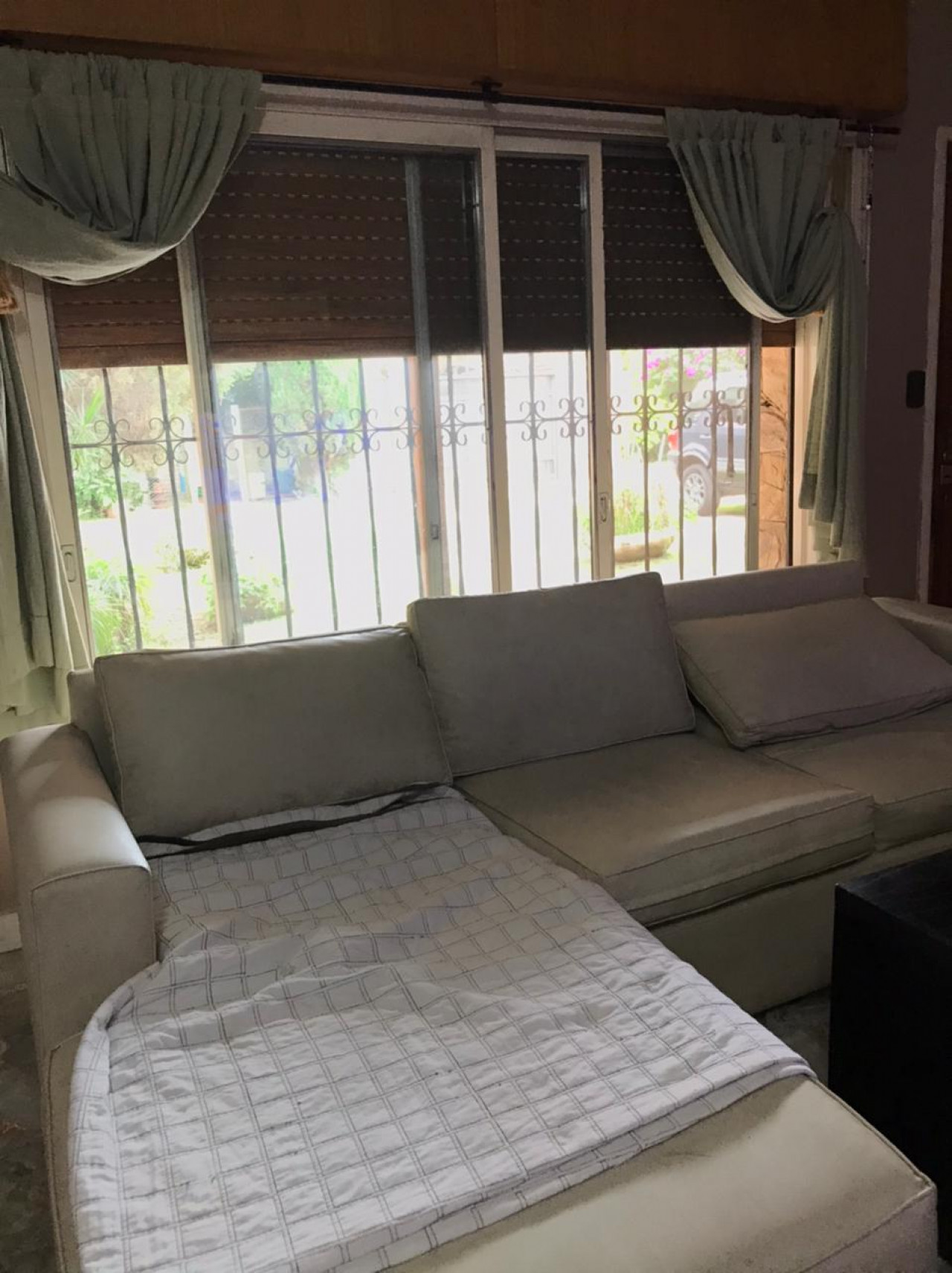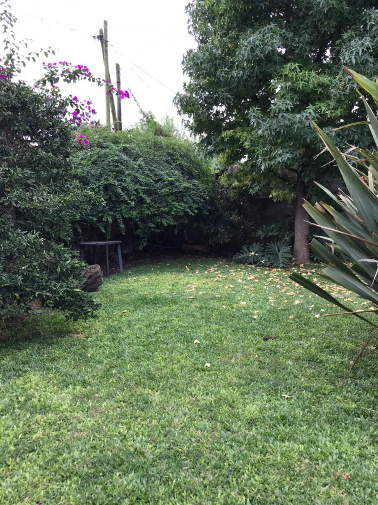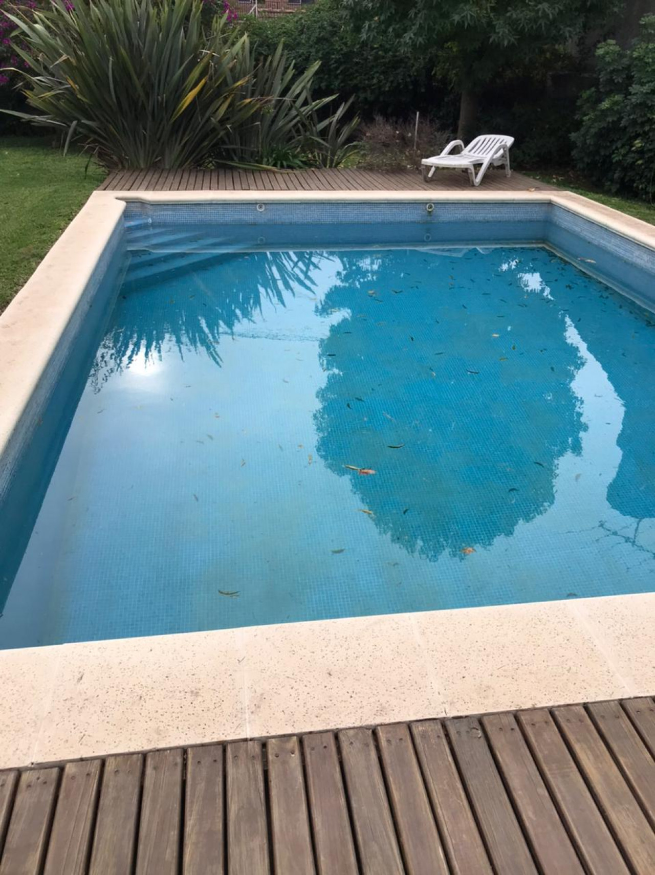 Puerta de madera de dos hojas corredizas, embutida, a cocina comedor diario con ventanal al frente, cocina con mueble bajo mesada, doble bacha de acero inoxidable, mesada de granito, bajo y sobre mesada, ventana, nicho para heladera, aire acondicionado tipo Split; todo este sector revestido de madera, 3º habitación con placar, acceso al altillo donde se encuentra instalada la caldera para la calefacción, ventana hacia el patio posterior. Hall a toilette completo, y puerta hacia el garaje. Puerta plegadiza al lavadero cómodo, con ventanas, placard y baulera, termotanque. Salida al jardín. Patio de medida generosas para tendedero. Jardín con gran variedad de arboles añosos, piscina climatizada con bordes de piedra atérmica y solárium en deck, revestida en venecita, con filtro y equipo de climatización; baño exterior nuevo: ante bañó con mesada de mármol travertino, doble bacha, sanitarios y ducha. Quincho enorme cerrado de 15 metros de largo x 5 metros de ancho con parrilla, horno a leña, cielorraso de madera a la vista, cuarto de guardado.