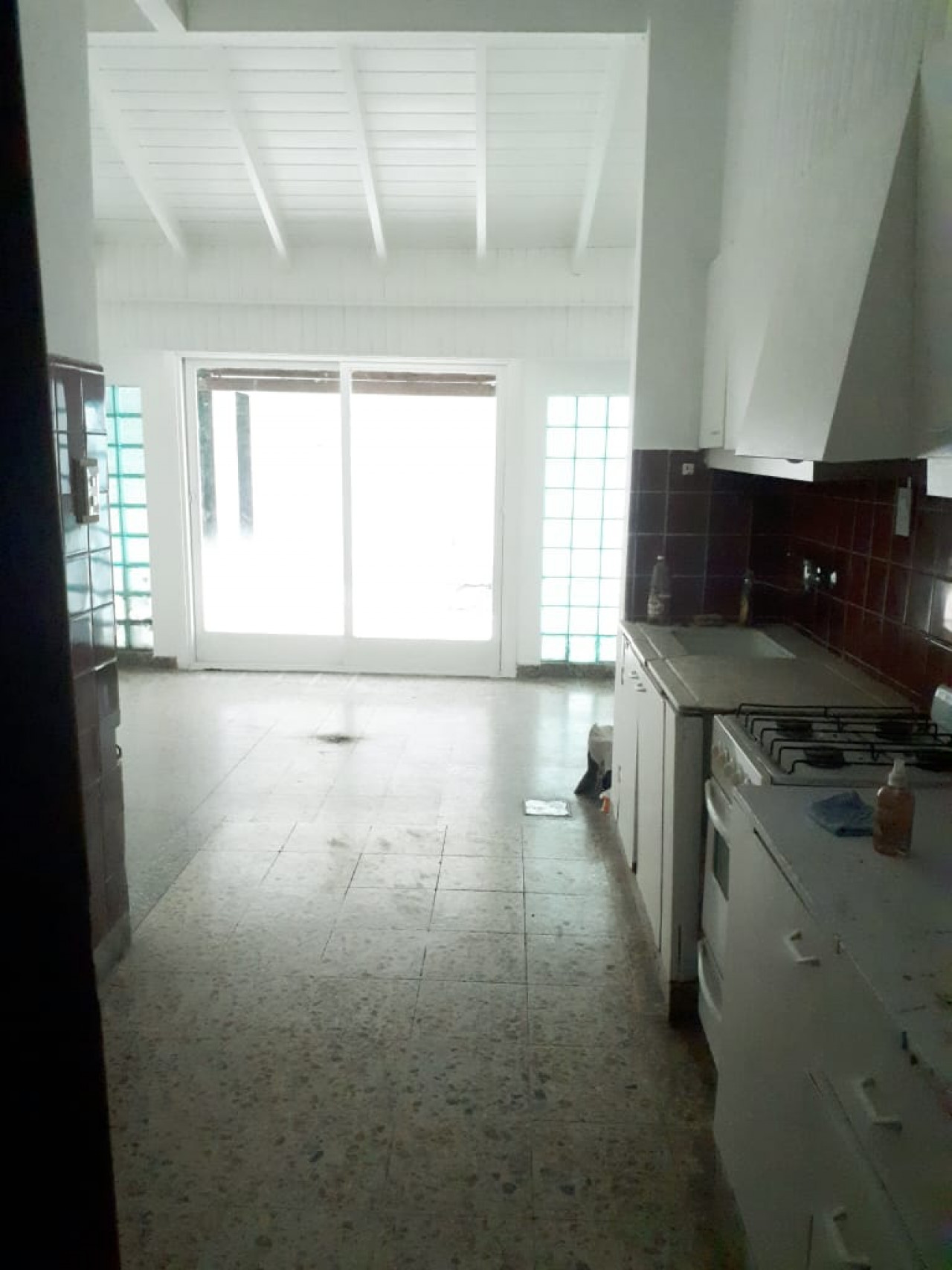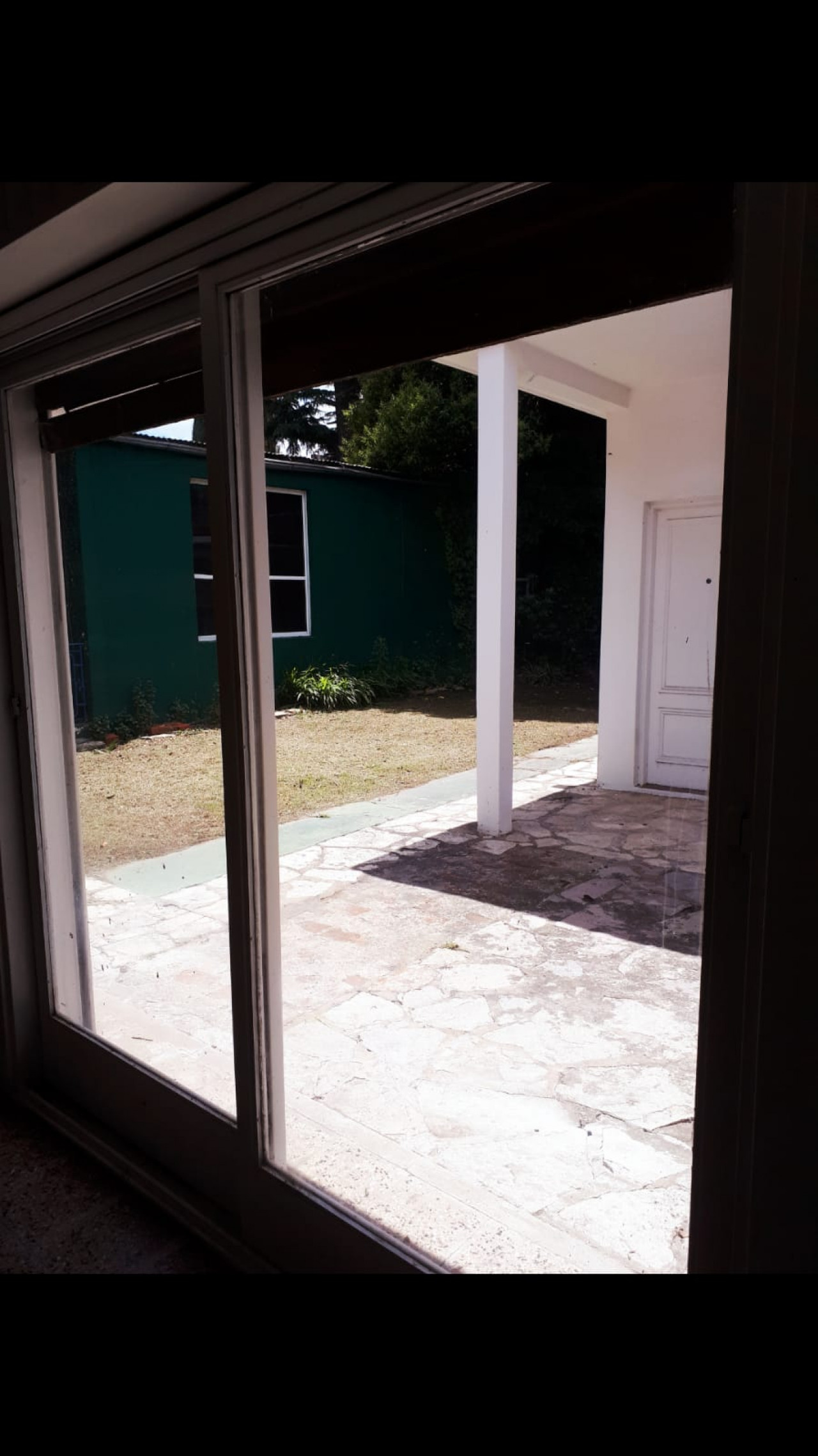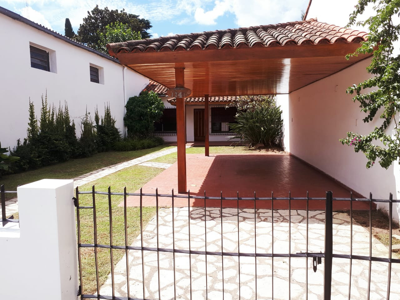 Ideal para emprendimiento habitacional: muy sólido, techo de teja colonial, jardín al frente, cochera con techo de tejas, abierta para varios autos, porche, hall de entrada, a ambos lados dormitorio con ventanas con rejas y persianas al frente, living amplio, un dormitorio grande, otro dormitorio con vista al lateral, baño completo, cocina comedor diario con mueble bajo mesada y alacena, termotanque, muy luminosa, salida a galería, jardín, parrilla.