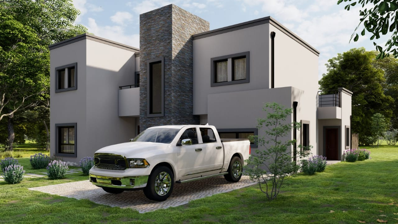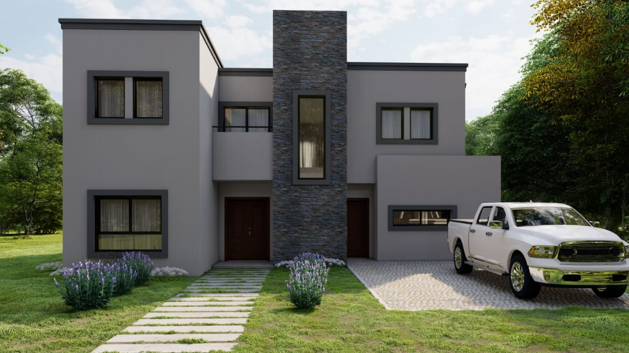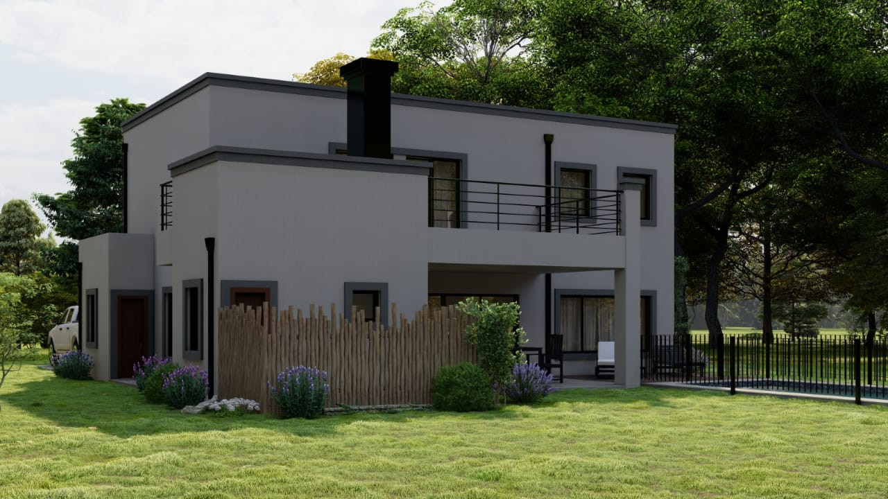 - Terminación tipo tarquini o similar en muros exteriores de frente; pintura con látex en muros interiores con enduído sobre revoque; pintura con látex a cielorrasos; puntura con esmalte sintético en puertas y herrerías.