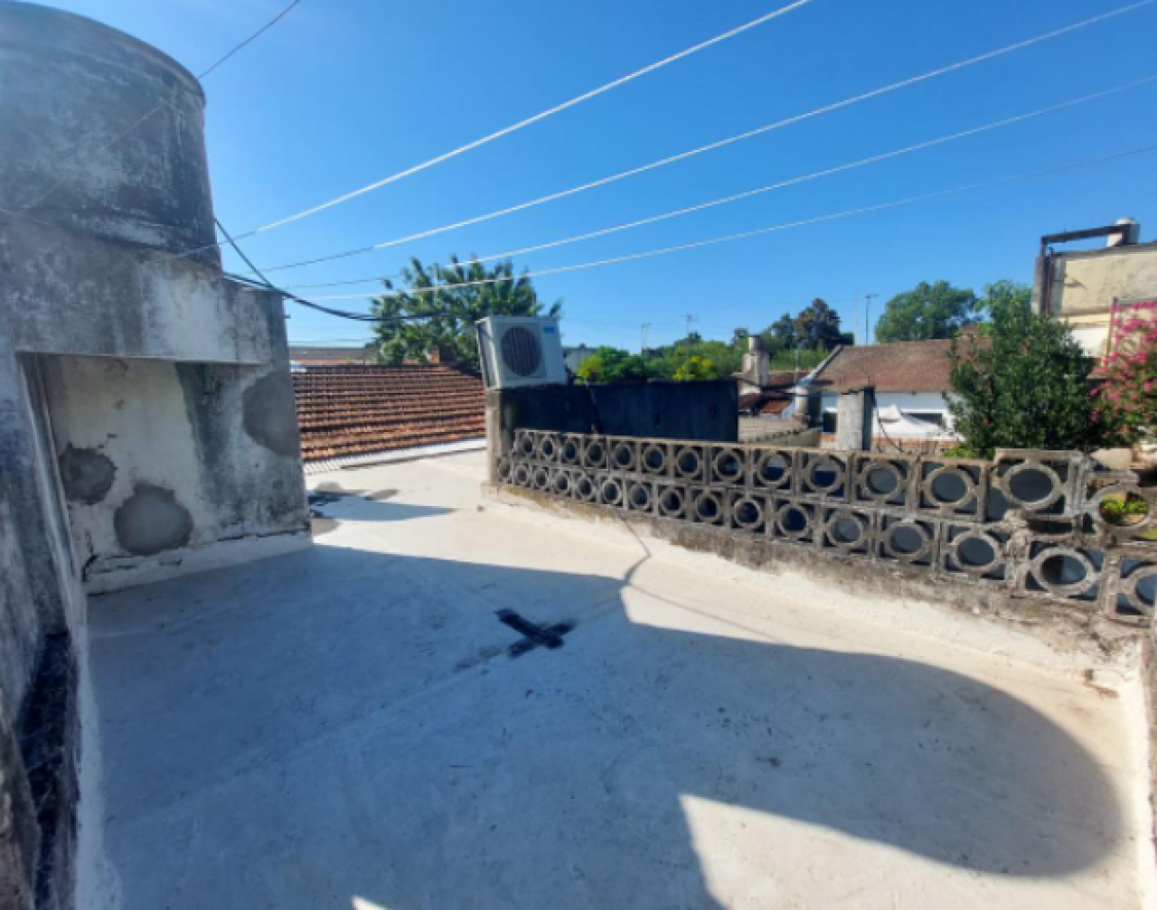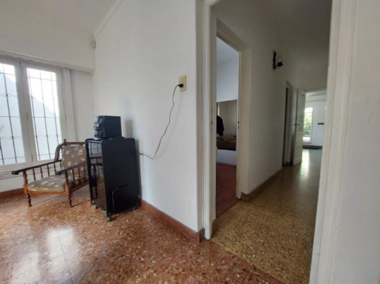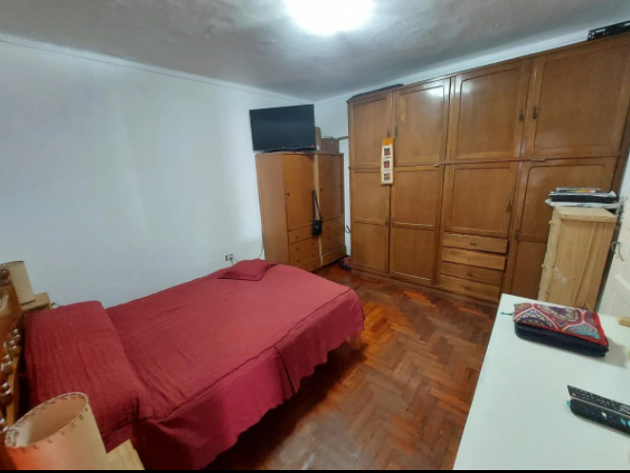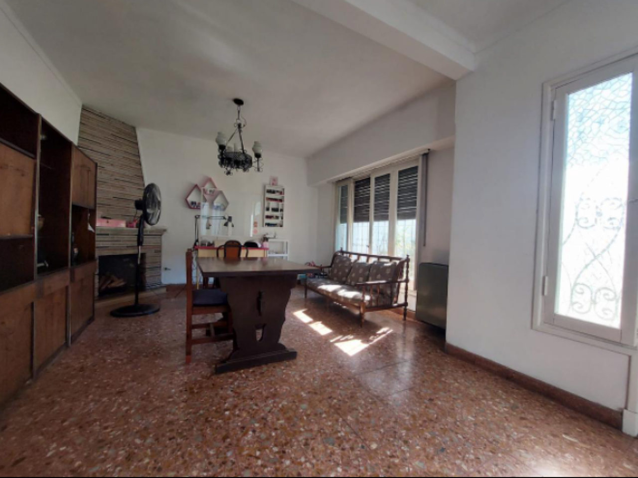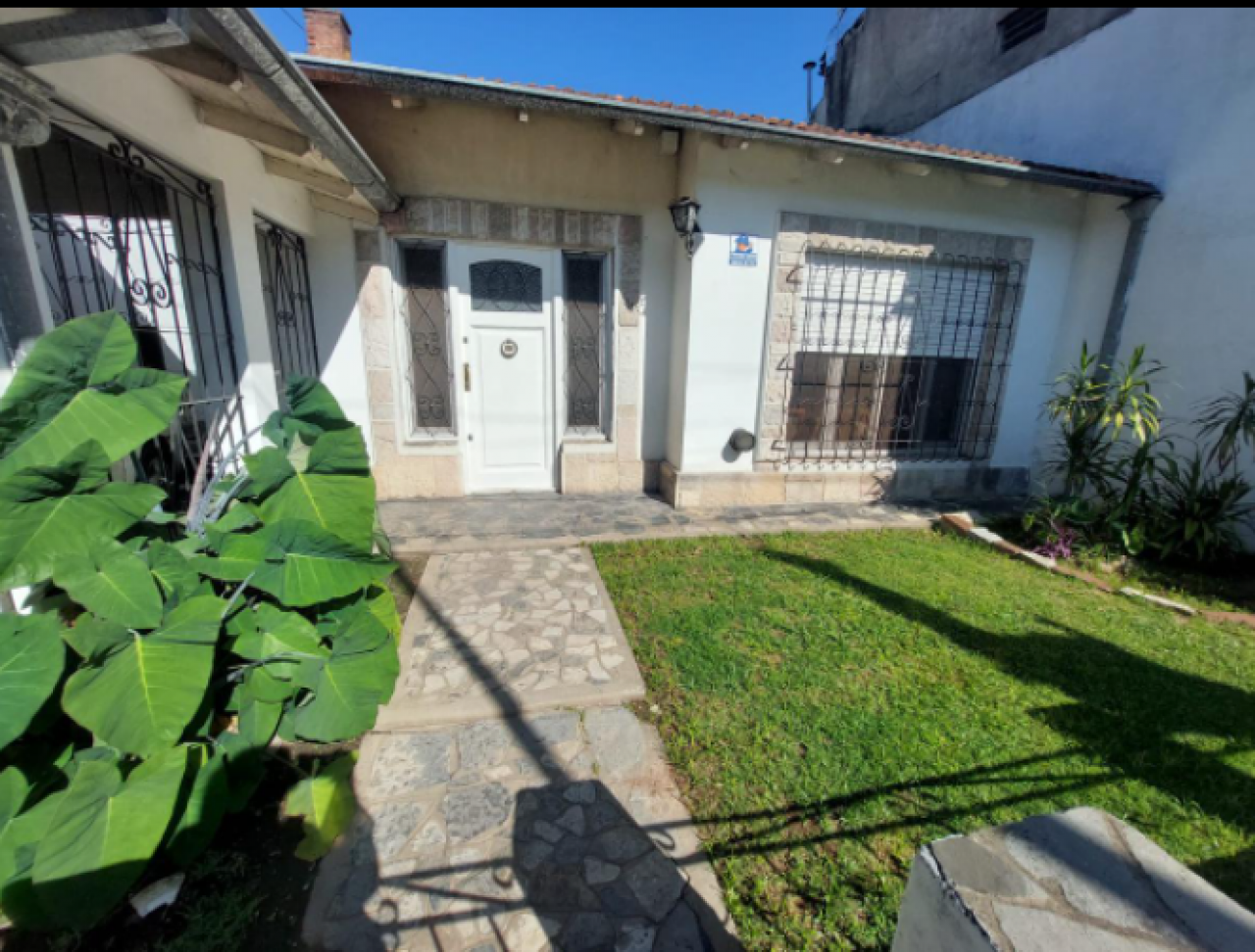 Chalet con tejas francesas, jardín al frente, garaje cochera pasante, living y comedor muy amplio y luminoso, calefactor, pasillo: Dos dormitorios, uno grande que se comunica al comedor diario, baño muy amplio con bañera y ventana. Cocina comedor diario de dimensiones importantes, con bajo mesada, termotanque, calefactor, aire tipo Split, muy luminosa. Puerta a estudio y/o cuarto de servicio. Exterior: gran patio, parrilla con mesada y pileta, cisterna para el agua corriente, jardín, lavadero y baño que se comunica con el estudio. Cuarto guarda útiles en el fondo. Escalera a terraza. Techo combinado con tejas francesas, losa y chapa. Construcción muy solida. Ambientes amplios.