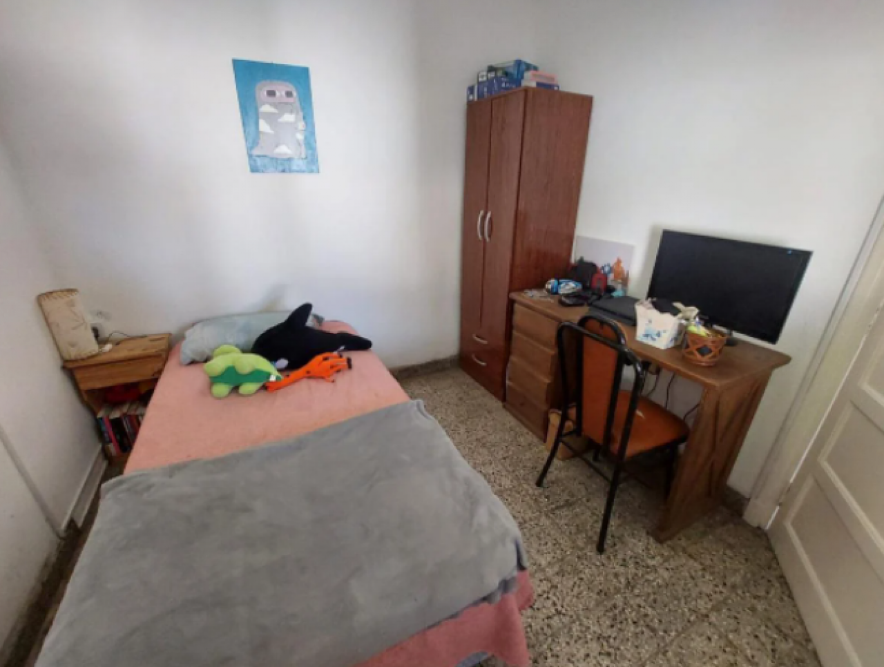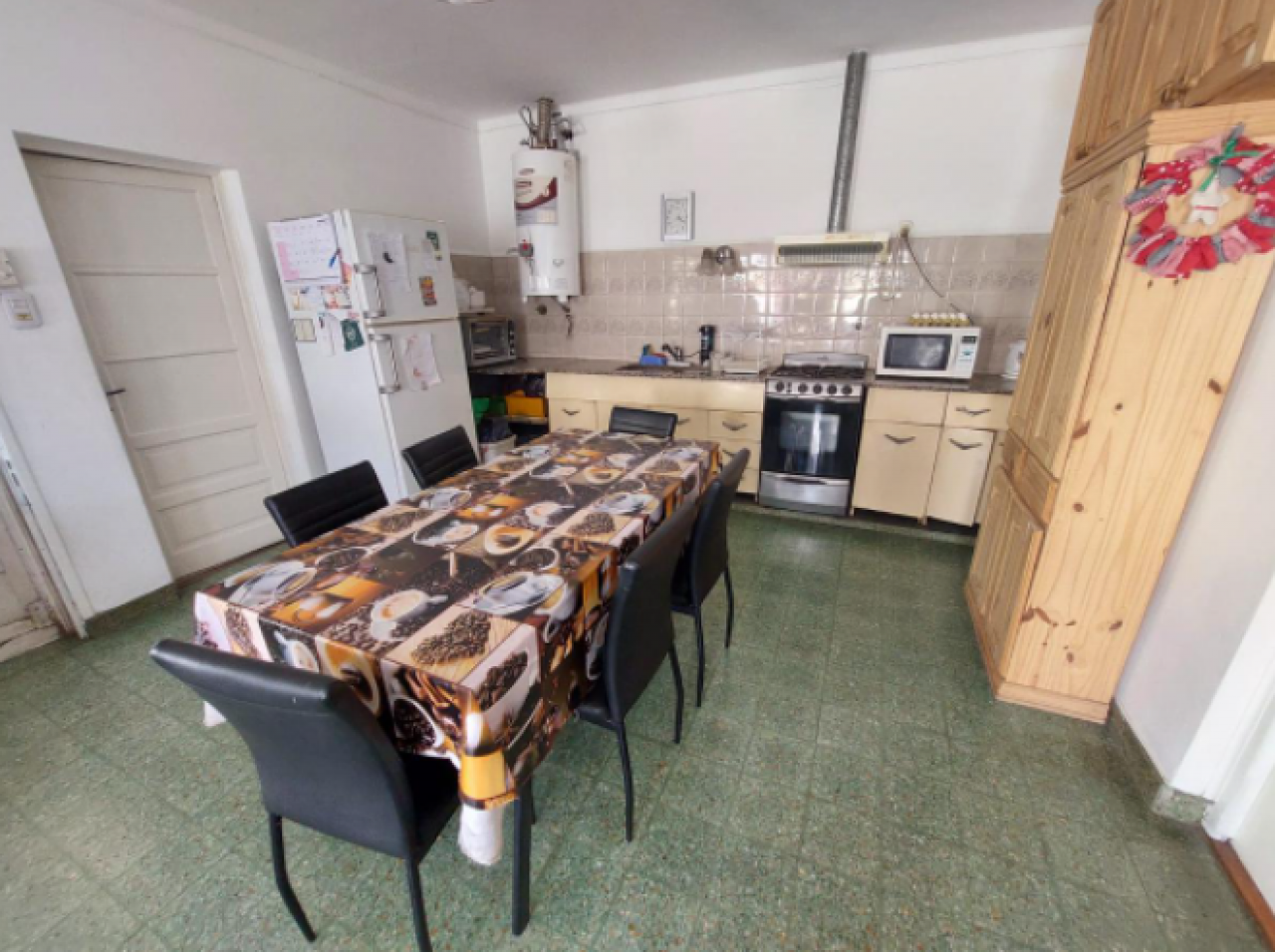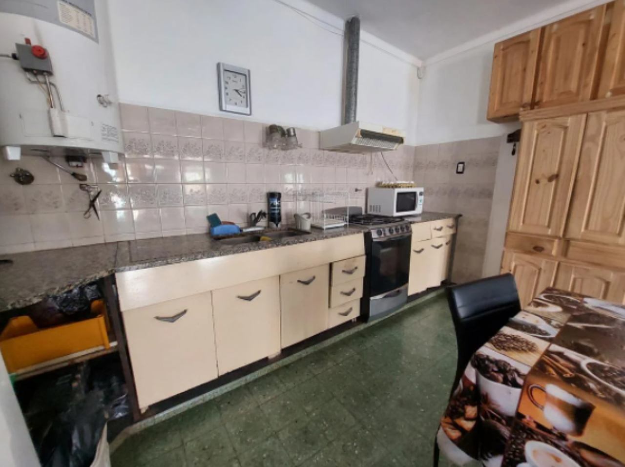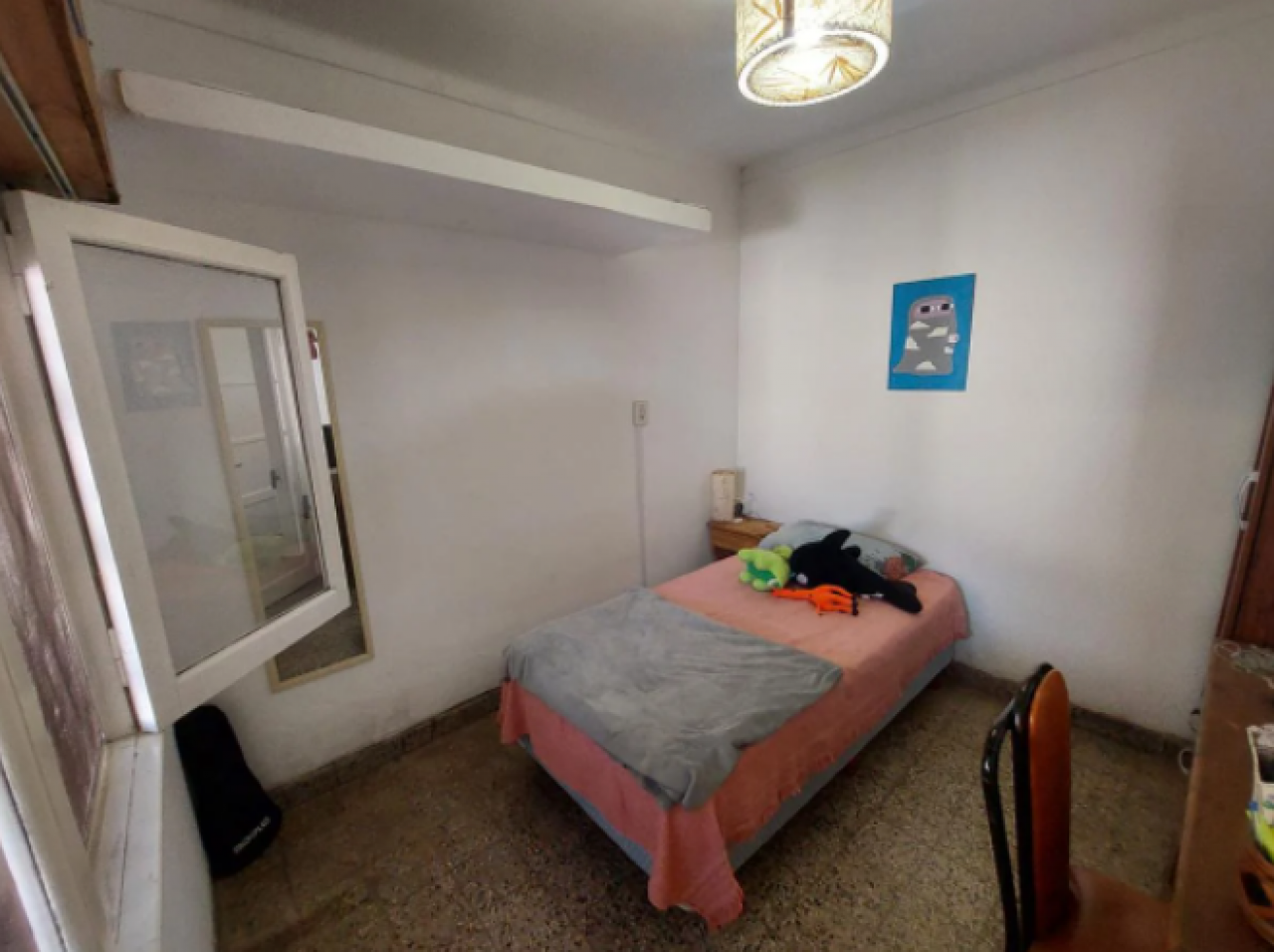 Chalet con tejas francesas, jardín al frente, garaje cochera pasante, living y comedor muy amplio y luminoso, calefactor, pasillo: Dos dormitorios, uno grande que se comunica al comedor diario, baño muy amplio con bañera y ventana. Cocina comedor diario de dimensiones importantes, con bajo mesada, termotanque, calefactor, aire tipo Split, muy luminosa. Puerta a estudio y/o cuarto de servicio. Exterior: gran patio, parrilla con mesada y pileta, cisterna para el agua corriente, jardín, lavadero y baño que se comunica con el estudio. Cuarto guarda útiles en el fondo. Escalera a terraza. Techo combinado con tejas francesas, losa y chapa. Construcción muy solida. Ambientes amplios.